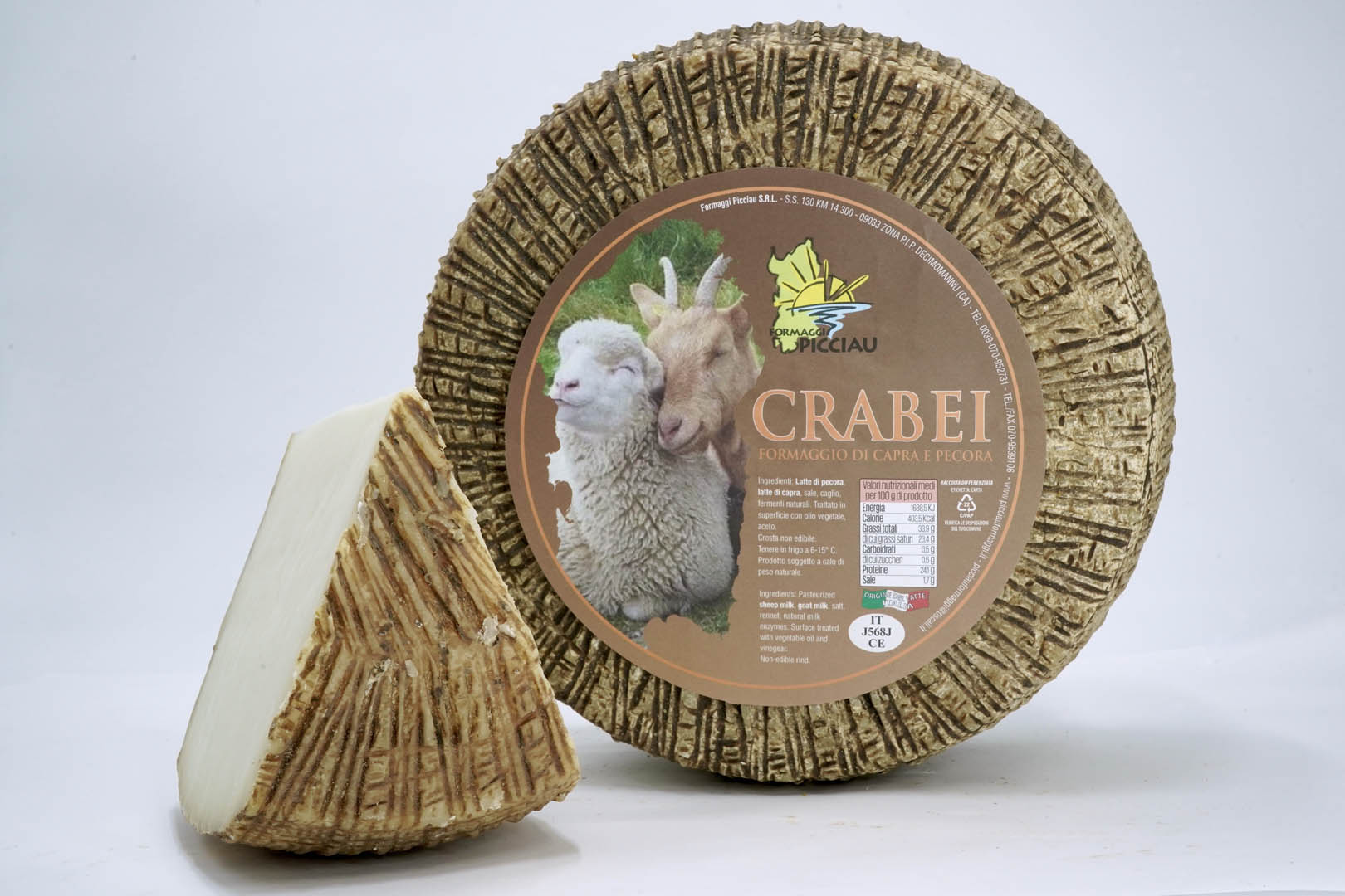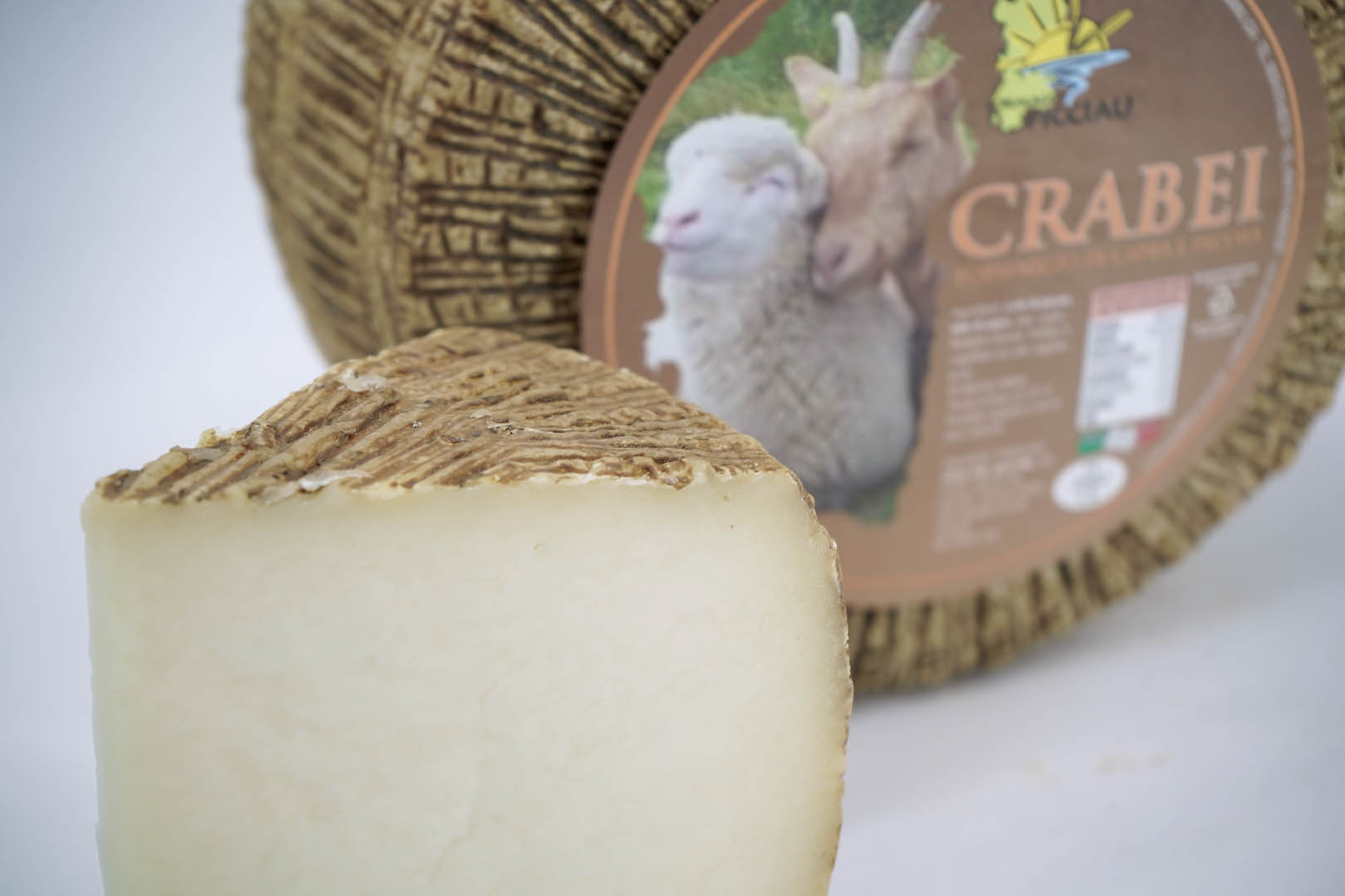 Crabei è il nostro formaggio misto prodotto con latte di pecora e di capra, da allevamenti 100% di Sardegna. Dalla crosta rigata e scura, nel suo cuore presenta una pasta compatta con leggere occhiature. Il sapore, invece, autentica espressione del territorio sardo, è inconfondibilmente deciso e avvolgente.